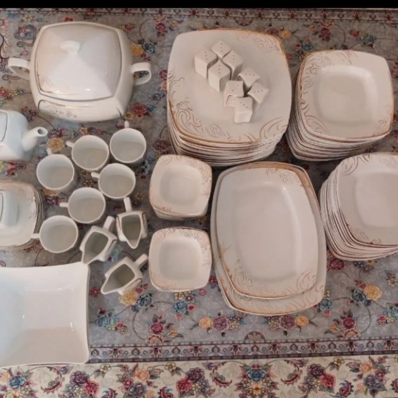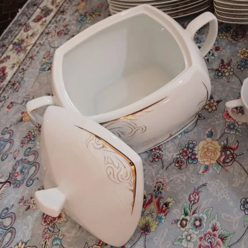 سرویس چینی توس ۱۲ نفره طرح المانی اکبند و نو همراه باجعبه